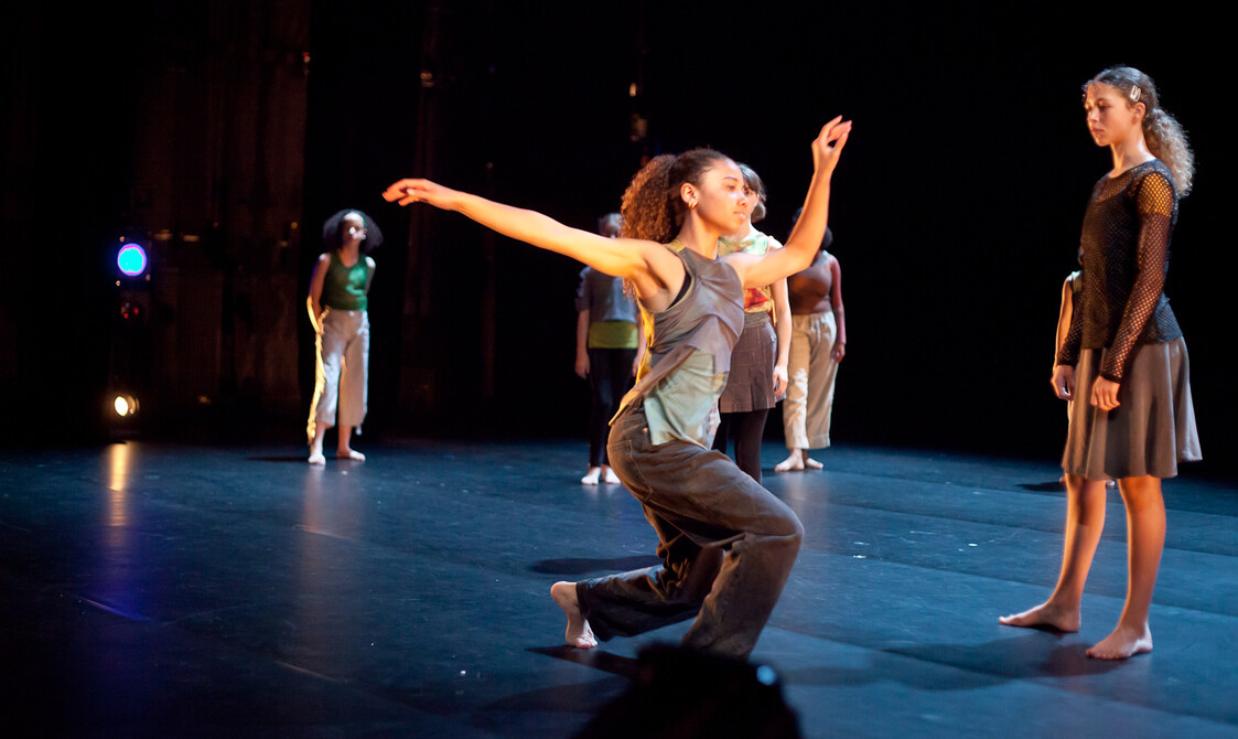 Centre for Advanced Training (CAT), at The Place, is a pre-vocational training programme for young people aged 11-16 years (students can stay on the programme until the age of 18 years) who have a passion for dance. The programme focuses on contemporary dance, fusion, creative studies and ballet, as well as providing health and wellbeing support, theatre trips, and career guidance to support holistic development. It runs on Saturdays during term time with two evening classes on weekdays, and students also get to participate in choreographic intensives during the holidays.