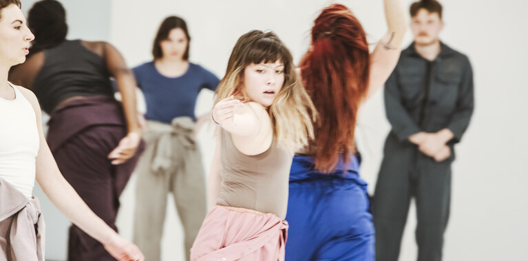 The students worked extensively with high profile project leaders from the contemporary dance sector, including choreographers and movement directors such as Hannes Langolf (Repertory Project), Theo Clinkard (Research and Development Project), Alexandra Reynolds (Movement for Film Project), Jenna Jalonen (New Repertory Project), Benjamin Jonsson (Movement for Fashion Project), PALETA (Music Video Project), AΦE (Experimental Technology Project) and course leader Tom English, assisted by Emma Farnell-Watson, for a special Creation Project with neo-soul singer Kymara and guitarist Louis Bell. Live and digital performances across the year allowed the students to engage with new and exciting ways for interacting with audiences, alongside the development of a deep community of practice amongst the cohort.