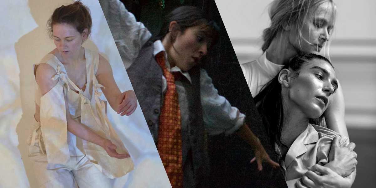 Alice Ortona Coles’ brave opening solo for Resolution 2024, begins with an empty stage, dramatic lighting and a voice-over describing different performance scenarios of women in white costumes. When Ortona Coles finally emerges dressed in white, dragging a long red rope braided into her hair, she skilfully embodies these imaginary performing presences. At first stuck in body knots and struggling with her red appendage, she gradually unravels in liberating sequences of spinning. However these exhilarating moments of escape are brief and are juxtaposed with the narrated discontents of her lonely life – a long list of things she hates about living in the world. Too Much, Too Many, All the Time is a cleverly constructed work that vividly explores dance and the imagination as coping mechanisms for a woman wrestling with her lived reality.
